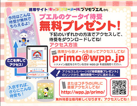“Character Mail Service Primopuel”(Monthly usage fee: 300 yen/tax included)