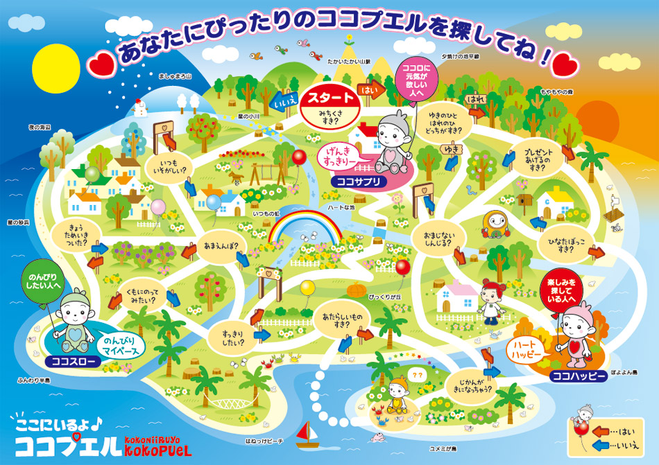 “PRiMOPUeL and his friends are mysterious beings with the power to heal broken hearts who came to Earth from Planet PRiMO, a small planet in the Heart Cosmos, the microcosm inside everyone’s hearts, to bring happiness and energy to everyone. When people’s hearts become sunny or cloudy, the weather on Planet PRiMO changes accordingly. PRiMOPUeL senses the weather in people’s hearts and worries, sympathizes, and cheers them on. When a person’s heart is broken or chipped, they visit Earth to heal that person’s heart. There are as many PRiMOPUeL on Planet PRiMO as there are hearts. This is the setting .” – プリモプエル (Wikipedia, translated to english)